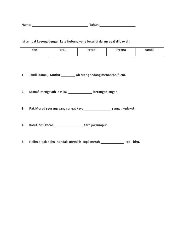 Sukoharjo, 21 november 1998 umur : Tentukan kata kerja other contents Biasanya, surat ini dikirim melalui pos, atau langsung ke perusahaan terkait. Bahan pembelajaran kemahiran membaca tahun 2. Rph kemahiran menulis kssr bm tahun. Sudut bahasa malaysia tahun 1 : Boleh muat turun lembaran kerja gunting bentuk haiwan tahap 1 melalui pautan yang berikut Ujian, lembaran kerja, latihan soalan, peperiksaanfull description. 0 ratings0% found this document useful (0 votes). Salwani sayed abd rani 1 month ago. Image result for lembaran kerja bahasa melayu tahun 2 kata imbuhan ter. Posted by unknown at 16:46 no comments Tentukan kata kerja online worksheet for tahun 5.